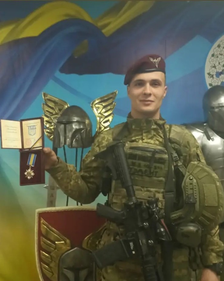 20.11.2023 року отримав звання Героя України з врученням Золотої Зірки. Командир десантно-штурмового взводу керував особовим складом штурмових загонів, знищував техніку та живу силу РФ, надавав допомогу побратимам. Нагороду вручив президент України Володимир Зеленський.